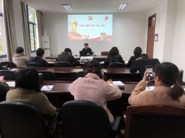 47日下午14:40,船舶学院党总支在学院203会议室组织召开“学党史 颂精神 培养‘红船’划桨人”党员培训学习会。培训由党总支书记宋雅兵主讲。学院全体党员教师参加培训。